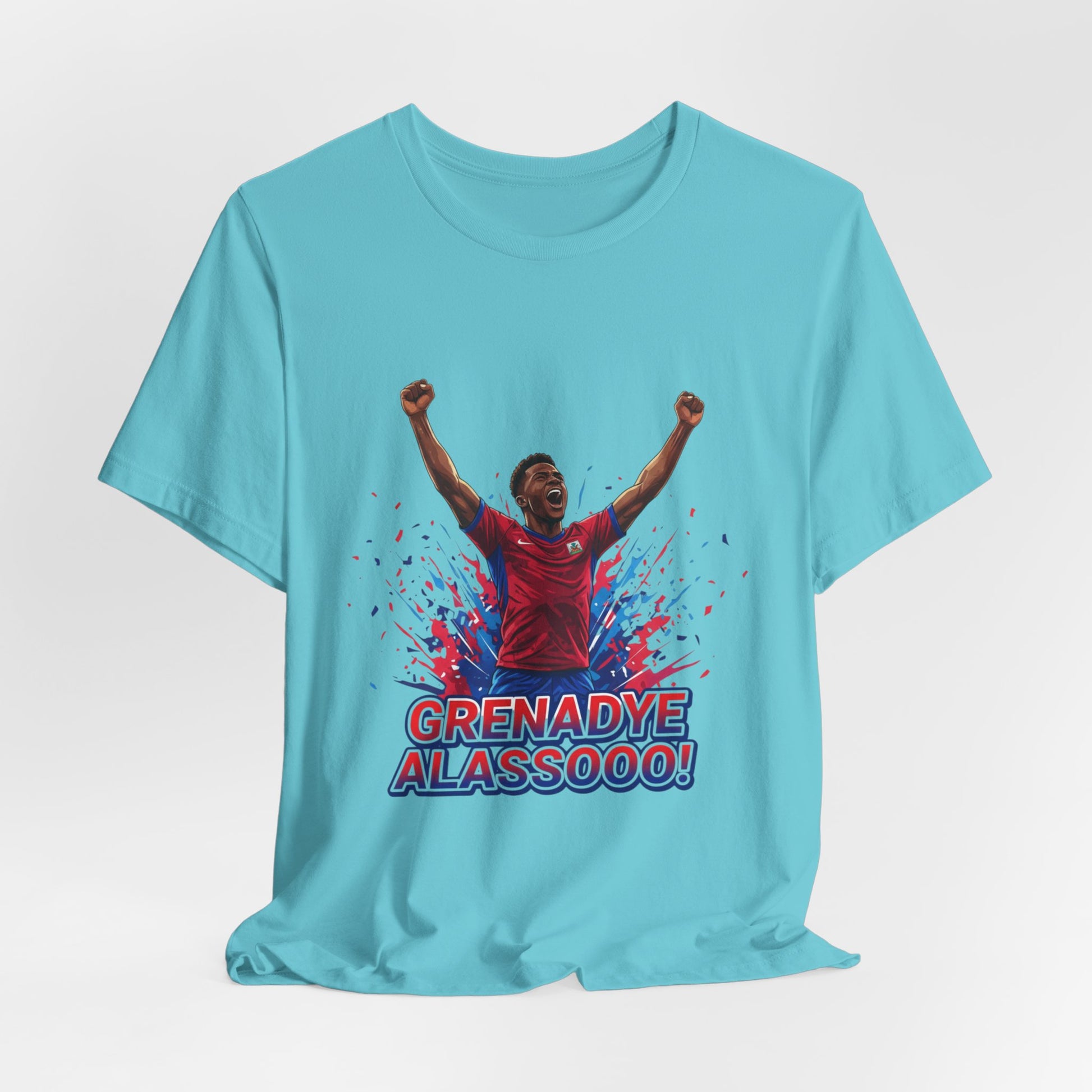 Soccer Celebration Tee — "Grenadye Alassooo!" Graphic Football Fan Shirt